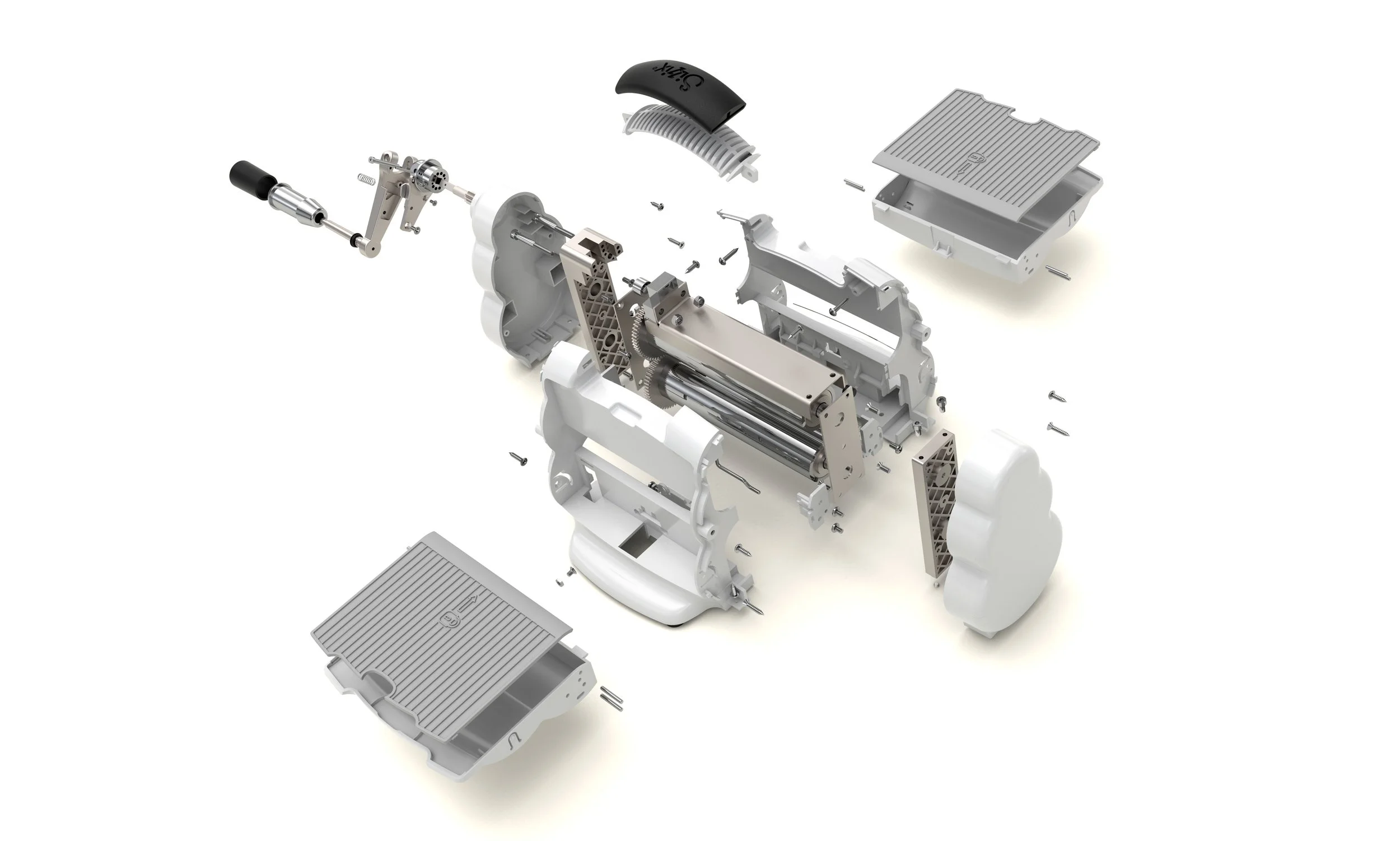 Worked with Engineering team to design a fold away version of the classic big shot machine. Was also part of the patent process and created patent drawings for this particular design.