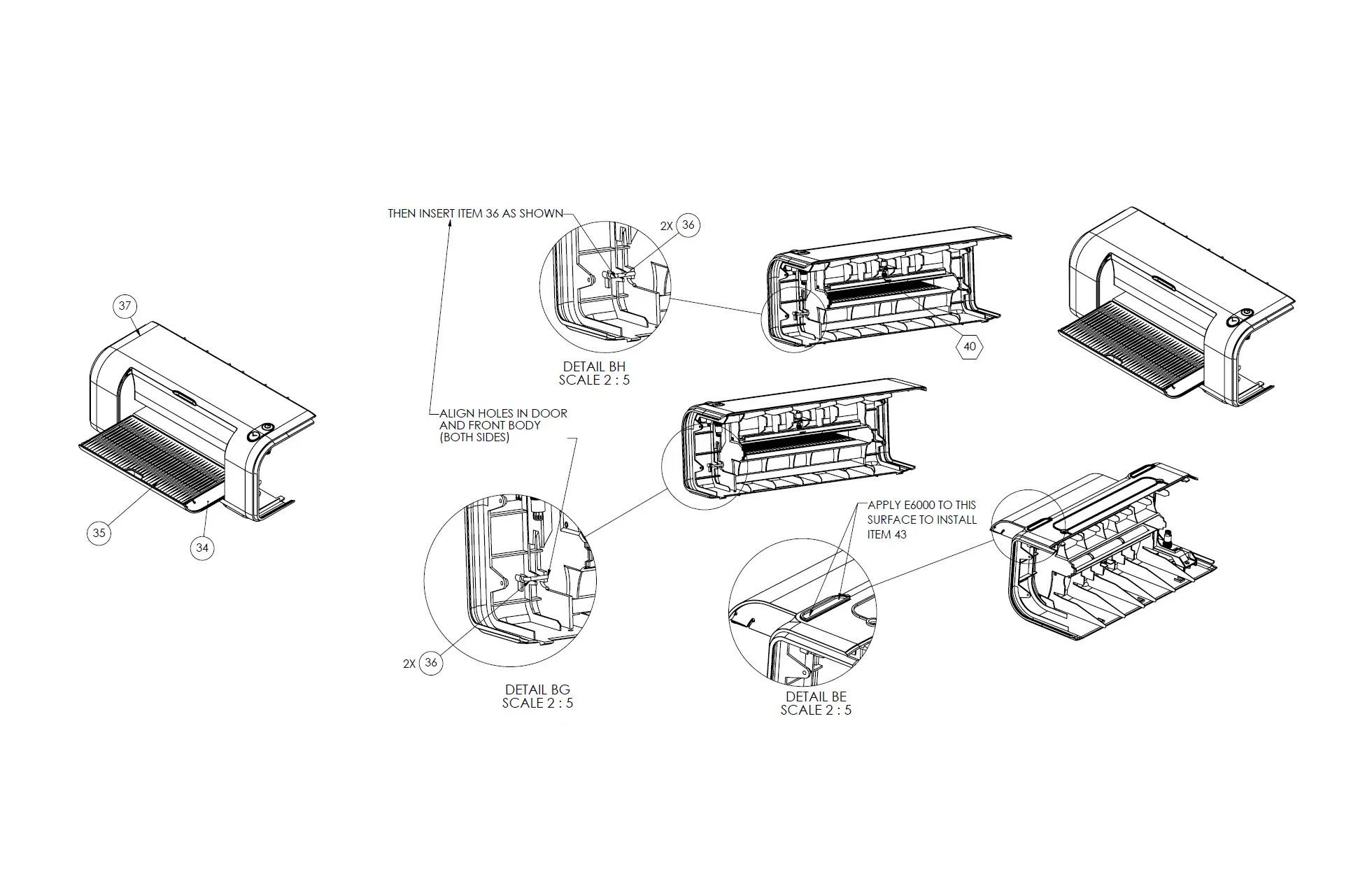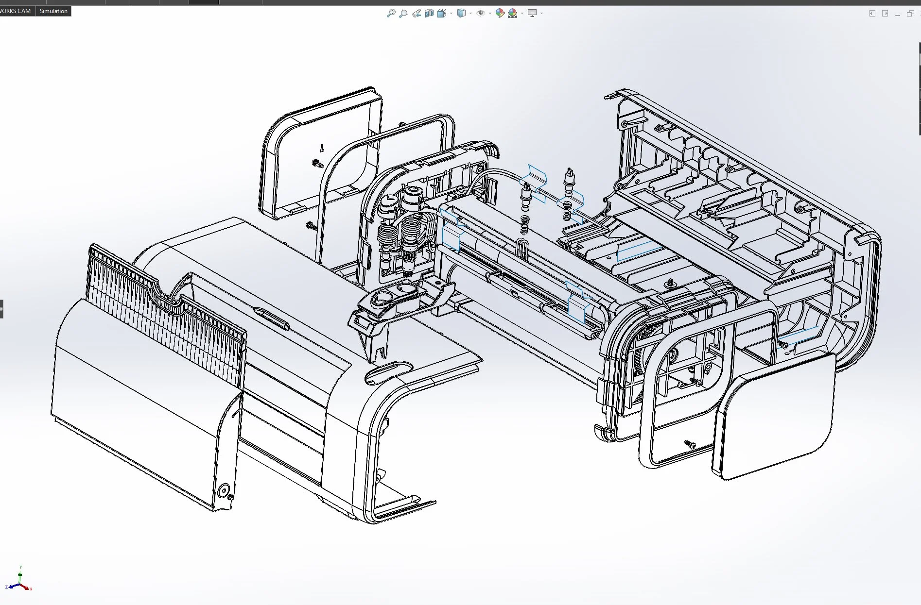 Worked with both design and engineering teams on the preliminary developement of switch electronic embossing machine as well as packaging design. Duties included assembly modeling and drafting. I’ve included A few drawings from the project.